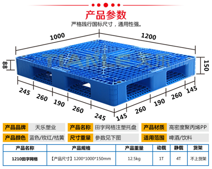 | 產(chǎn)品名稱 | 田字網(wǎng)格塑料托盤 |