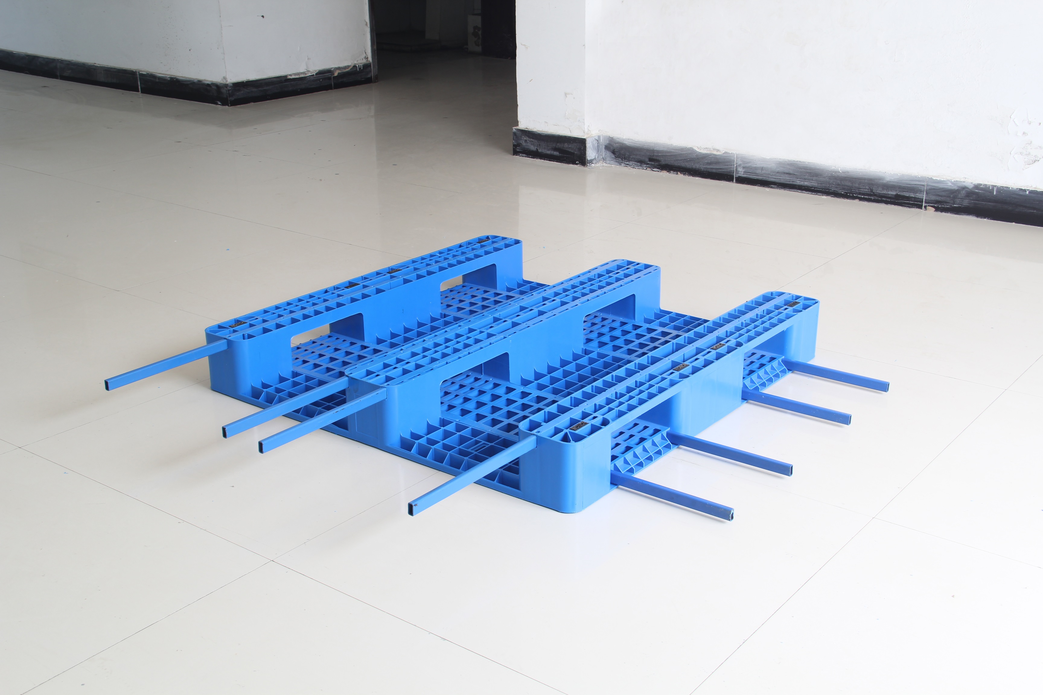 一般情況下,塑料托盤在主要位置有一個穿過鋼管的孔。鋼管可插入孔內(nèi),然后兩側(cè)用塑料蓋扣緊。因此,如果不打開塑料蓋,就看不到鋼管。增加鋼管,使塑料托盤能夠承載更大、更重的貨物。鋼管一般為空心鋼管,壁厚一般為1.2-1.9mm,鋼管厚度根據(jù)需要選擇,不同厚度的鋼管壓力也不同。